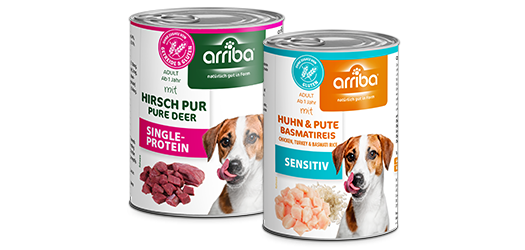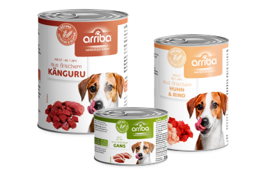 Entdecke unsere leckeren Sorten von arriba. Unser arriba Nassfutter ist die optimale Wahl für alle Hundehalter, die Ihren Hund günstig und getreidefrei ernähren möchten. Jede Dose verfügt über saftige Fleischstückchen abgerundet mit Distelöl, dessen ungesättigten Fettsäuren die körpereigenen Abwehrkräfte und den Zellschutz unterstützen können. Lust auf außergewöhnliche Geschmacksrichtungen? Dann werden dir unsere Sorten wie Pferd, Gans, Wasserbüffel, Kamel oder Känguru sicherlich gefallen! Unser arriba Nassfutter erhältst du in 200g, 400g und 800g Dosen.