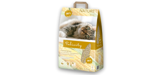 Eine ergiebige Katzenstreu aus natürlicher Getreidefaser gewählt, die durch eine ausgezeichnete Klumpenbildung und sehr gute Flüssigkeitsaufnahme besonders auch für mittlere und große Katzen die ideale Wahl ist. Durch die grobe Körnung verschließt Felicity NATURE pure Klumpstreu auch größere Mengen Urin in einem leicht und sauber zu entnehmenden Klumpen, der wie ein dichter Mantel wirkt und so nahezu keine Gerüche entweichen lässt. Die grobe Körnung sorgt für ein angenehm weiches Pfotengefühl und ist damit auch für empfindliche Katzen geeignet.