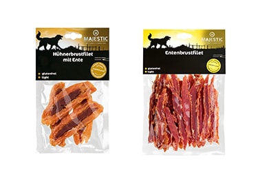 Leckere Hundesnacks frei von künstlichen Zusatzstoffen und schonend ofengetrocknet. Unsere MAJESTIC Hundesnacks bringen Abwechslung in den Hundenapf, egal ob Entenbrustfilet, Hühnerbrustfilet oder leckere Kaurollen für deinen Hund ist sicherlich der passende Snack dabei.