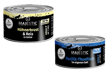 MAJESTIC Hunde- und Katzennahrung wurde in Zusammenarbeit mit Ernährungswissenschaftlern entwickelt. Es erfüllt die speziellen Bedürfnisse von Hunden und Katzen. Für jedes Alter und jedes Aktivitätsniveau gibt es das optimal abgestimmte Futter. MAJESTIC Katzennahrung zeichnet sich aus durch den Beauty-Wellness Effekt, wogegen sich das Hundefutter durch den Ballaststoff-Komplex auszeichnet. MAJESTIC bietet für Hunde und Katzen Trockenfutter, Nassfutter und Snacks.