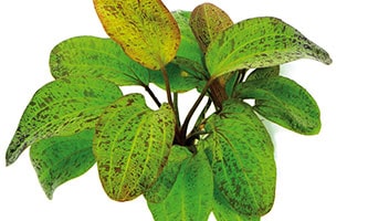Echinodorus cordifolius 'Tropica Marble Queen' besitzt eine sehr hübsche Marmorierung und eignet sich für niedrige, offene Aquarien.