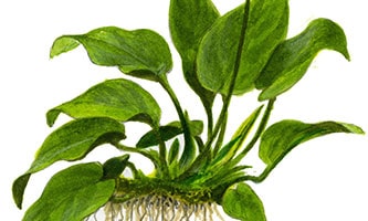 Das Kaffeeblättrige Speerblatt ist eine niedrige Variante von Anubias barteri und ist für kleine wie für große Aquarien geeignet.