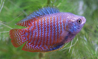 Der Zwergfadenfisch ist wunderschön, jedoch recht schwierig in der Haltung. Er kann nur mit friedfertigen Fischen vergesellschaftet werden.