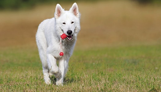 Mit der Gewöhnung an das Wasser beginnst du am besten im Welpenalter, in etwa ab dem vierten Monat. Such für die ersten Annäherungsversuche ein flaches Gewässer auf. Der Welpe braucht dann Zeit, um sich langsam dem neuen Element zu nähern und erst einmal alles zu erkunden. Zeig ihm, wie viel Spaß es macht, durch das flache Wasser zu waten. Wie bei anderen Bereichen der Hundeerziehung gilt auch hier: Lob ihn kräftig, wenn er dir folgt. Wenn er sich nicht traut, dir zu folgen, lockst du ihn mit Spielzeug oder Leckerlis. Zeigt dies Erfolg, kannst du letztere direkt als Belohnung einsetzen. Anschließend kannst du deinen Hund an das Schwimmen heranführen. Apportierspiele eignen sich dafür gut. Wirf den Gegenstand am Anfang nur so weit, dass der Hund noch im Wasser stehen kann. Erst wenn du den Eindruck hast, dass dein Hund sich im Wasser sicher fühlt, kannst du den Gegenstand so weit werfen, dass dein Hund ein bis zwei Züge schwimmen muss. Wenn er zurück an Land ist, lobst du ihn für seine Leistung.
