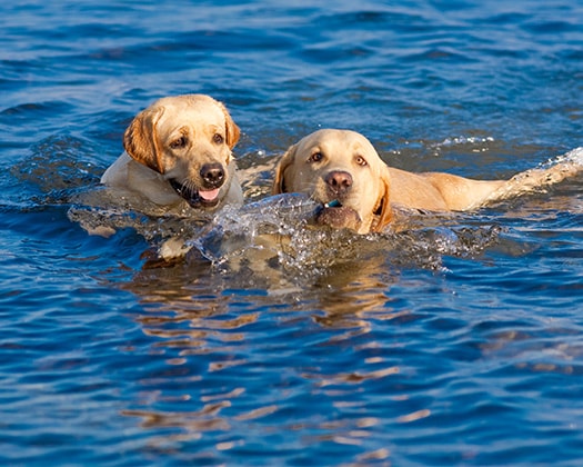Hunde sind die geborenen Schwimmer. Das Bad im kühlen Nass macht Spaß und ist zugleich ein gutes Fitnesstraining. Manche Hunde haben sogar Schwimmhäute, wie etwa der Labrador und der Neufundländer. Bei einigen sind diese Zehenzwischenhäute sehr stark ausgeprägt, deswegen werden die Häutchen oft als Schwimmhäutchen bezeichnet. Hunde müssen das Schwimmen übrigens nicht erst lernen, sie können es einfach. Verlieren sie den Kontakt zum Boden, paddeln sie einfach drauf los und schwimmen. Aber Vorsicht: Du weißt das, dein Hund nicht! Wirf ihn deshalb nicht ins kalte Wasser. Führe ihn lieber behutsam an die neue Erfahrung „Schwimmen“ heran.