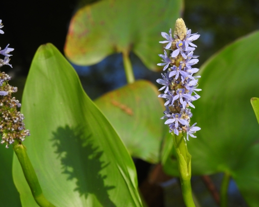 In der Flachwasserzone des Gartenteichs ist das Wasser etwa 20 bis 60 cm tief. Hier lassen sich schön blühende Pflanzen einsetzen, deren Blütenstiele über der Wasseroberfläche aufragen. Dazu gehören beispielsweise die Sumpf-Schwertlilie und die Blumenbinse, die wegen ihrer langen und oft gebogenen Blütenstiele auch als Schwanenblume bekannt ist. Für strahlend blaue Blüten in deinem Gartenteich pflanze herzblättriges Hechtkraut in die Flachwasserzone ein. Das Hechtkraut würde im Zweifel auch in der Sumpfzone gedeihen, aber in der Flachwasserzone ist es besser vor Frost geschützt. Wenn du deine Teichbepflanzung noch um etwas grünen Blattschmuck ergänzen möchtest, kannst du beispielsweise Pfeilkraut und Tannenwedel einpflanzen.